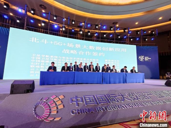 圖為北斗+5G+場(chǎng)景大數(shù)據(jù)創(chuàng)新應(yīng)用戰(zhàn)略合作簽約。 劉美伶 攝