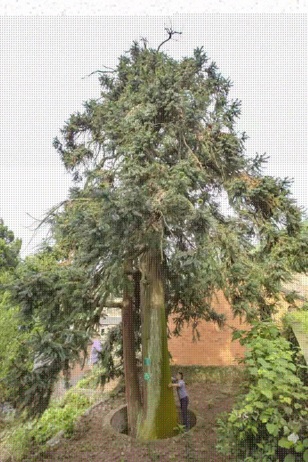 評(píng)定依據(jù):該樹樹高15米,平均冠幅30米,胸徑170厘米,樹齡500年。樹體高大、樹冠飽滿、樹形優(yōu)美、長勢良好。