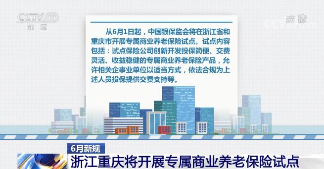 從6月1日起,中國銀保監(jiān)會將在浙江省和重慶市開展專屬商業(yè)養(yǎng)老保險試點。試點內(nèi)容包括:試點保險公司創(chuàng)新開發(fā)投保簡便、交費靈活、收益穩(wěn)健的專屬商業(yè)養(yǎng)老保險產(chǎn)品,允許相關(guān)企事業(yè)單位以適當方式,依法合規(guī)為上述人員投保提供交費支持等。