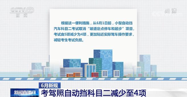 根據(jù)這一便利措施,從6月1日起,小型自動擋汽車科目二考試取消“坡道定點停車和起步”項目,考試由5項減少為4項,更加貼近實際駕車操作要求,減輕考生考試負擔。