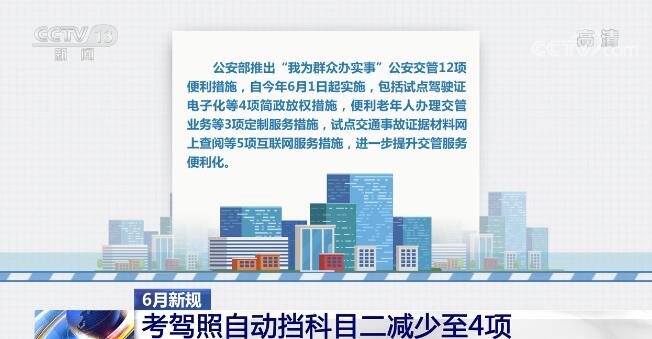 另外,公安部推出“我為群眾辦實事”公安交管12項便利措施,自今年6月1日起實施,包括試點駕駛證電子化等4項簡政放權(quán)措施、便利老年人辦理交管業(yè)務等3項定制服務措施,試點交通事故證據(jù)材料網(wǎng)上查閱等5項互聯(lián)網(wǎng)服務措施,進一步提升交管服務便利化。