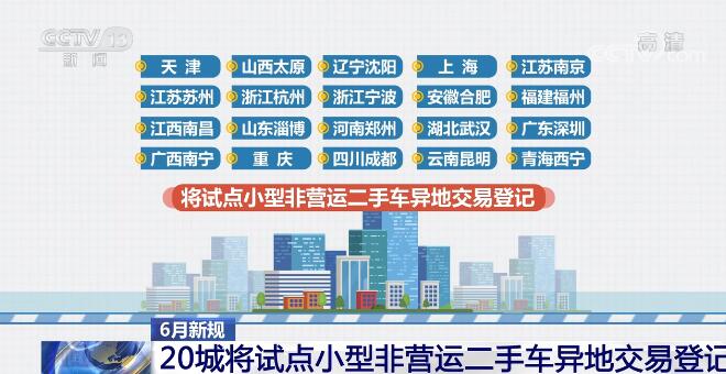 6月1日起,天津、太原、沈陽、上海等20個城市試點推行小型非營運二手車異地交易登記。已登記的小微型非營運載客汽車,買賣雙方可以選擇在車輛轉(zhuǎn)出地或者轉(zhuǎn)入地進行交易。辦理交易的二手車交易市場經(jīng)營者、二手車經(jīng)銷企業(yè)、二手車拍賣企業(yè)等經(jīng)營主體依規(guī)核驗車輛及手續(xù)資料、開具二手車銷售統(tǒng)一發(fā)票。但在車輛轉(zhuǎn)入地和轉(zhuǎn)出地以外第三地進行交易的車輛,不能辦理交易事宜。