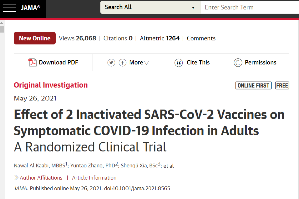 《美國(guó)醫(yī)學(xué)會(huì)雜志》刊發(fā)的國(guó)藥集團(tuán)新冠疫苗Ⅲ期臨床試驗(yàn)中期分析結(jié)果的論文截圖