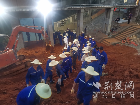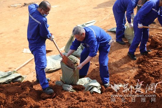 荊楚網(wǎng)(湖北日報網(wǎng))訊(通訊員楊亞慧)5月30日上午,黃石市黃石港長江干堤上港閘口,一面面鮮艷的旗幟在風(fēng)中獵獵飄揚。來自黃石新興管業(yè)有限公司的58名突擊隊隊員在烈日下與時間賽跑,爭分奪秒進行裝袋、搬運、傳遞沙袋等搶險工作。