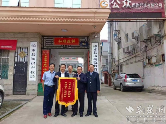 湖北蓮花電力母線制造有限公司法定代表人蘭國林將錦旗送到浠水縣市場監(jiān)管局。通訊員 供圖