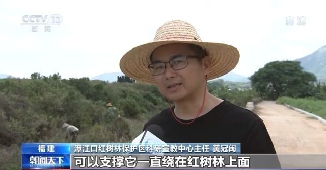漳江口紅樹林保護區(qū)科研宣教中心主任 黃冠閩:它是藤本植物,可以支撐它一直繞在紅樹林上面,嚴重的時候,它會全面地覆蓋在紅樹林上面,導致紅樹林窒息死亡。為什么會窒息死亡,就是缺乏光合作用。