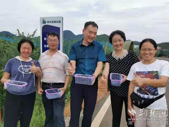 “第一次到這邊來玩,景色真美?!庇慰筒芟壬鷶y友人在大冶市金牛鎮(zhèn)林豐藍莓莊園采摘藍莓,體驗田園生活的他們心情格外美麗。