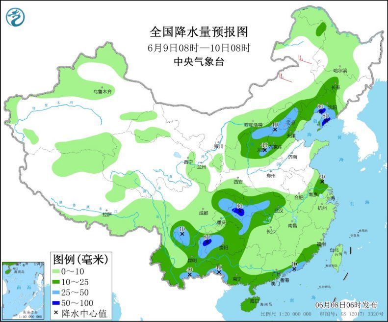 中新網(wǎng)6月8日電 據(jù)中央氣象臺(tái)網(wǎng)站消息,受高空槽東移影響,6月9-11日,西南地區(qū)、長江中下游等地有較強(qiáng)降雨過程;四川南部、重慶東部、云南、貴州大部、浙江北部等地的部分地區(qū)有大到暴雨;受高空冷渦影響,6月8日-10日,華北、東北地區(qū)大部以及內(nèi)蒙古中東部等地的部分氣度有對(duì)流天氣。