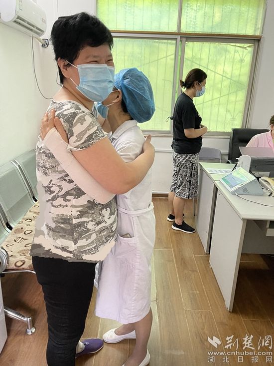 圖為張女士接種后激動地與醫(yī)務人員擁抱致謝。(通訊員供圖)