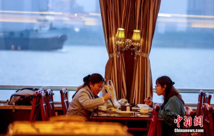 資料圖:4月1日晚,武漢兩江游覽公司“牡丹號”游船一樓餐廳里游客們自助取餐,品嘗游船特色美食,觀看兩江四岸燈光秀。這是自2020年1月暫停游船餐飲航班以來,兩江游船首次恢復(fù)對外開放游船堂食。 中新社記者 張暢 攝