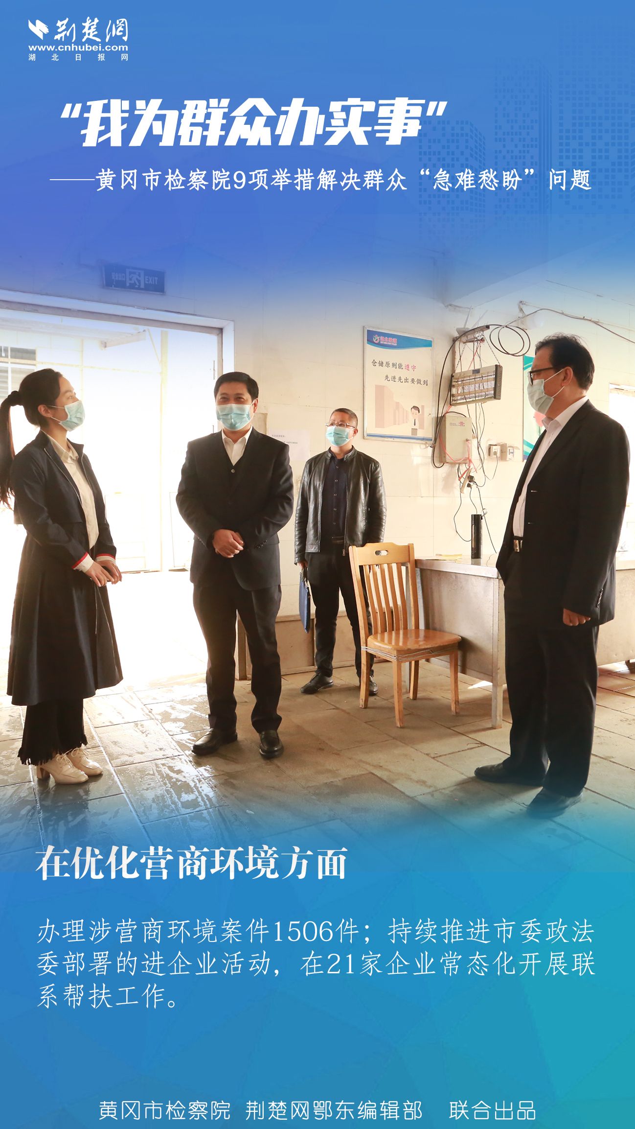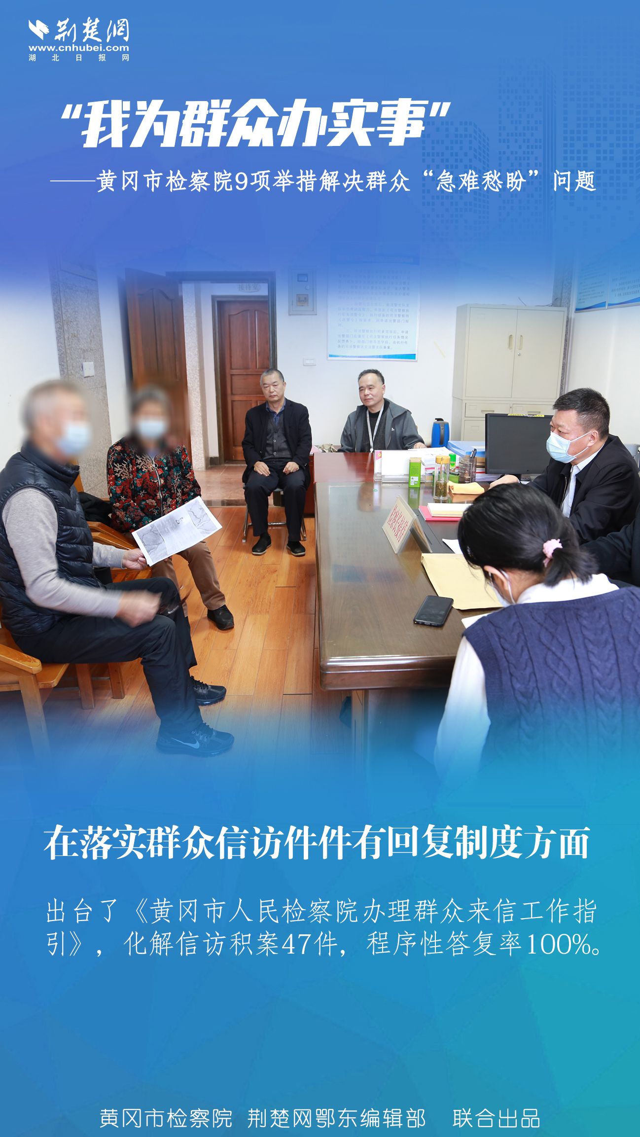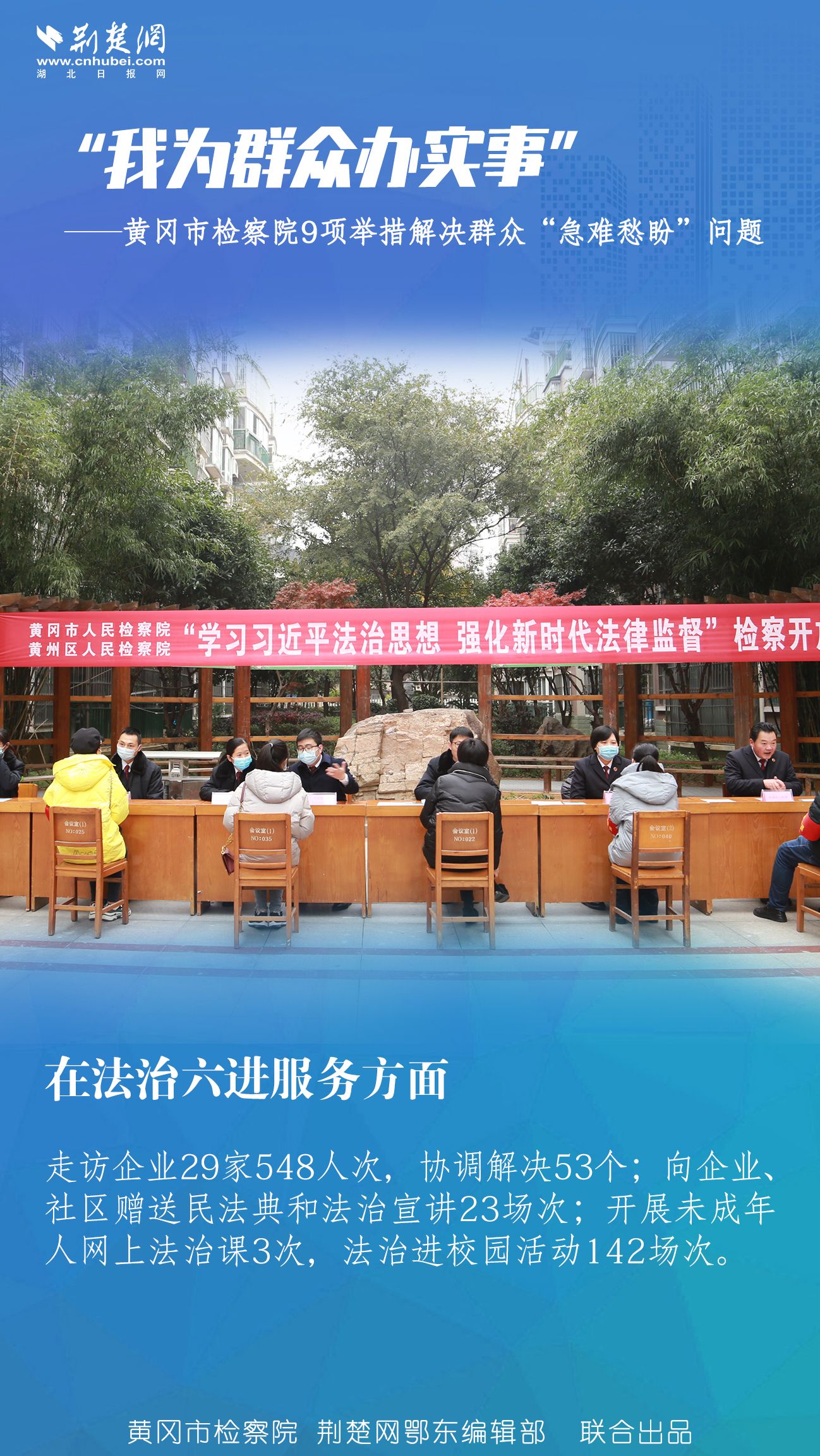 趙加新介紹,政法隊伍教育整頓開展以來,全市檢察機關全面貫徹落實黨中央決策部署和省市委、上級院工作要求,把“我為群眾辦實事”作為黨史學習教育和政法隊伍教育整頓的重要內容,集中推出9項“我為群眾辦實事”舉措,著力解決群眾“急難愁盼”問題。