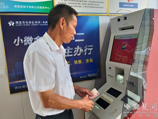 村民通過智能惠農(nóng)終端機取錢。(通訊員供圖)