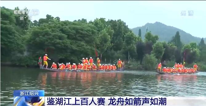 在浙江紹興,風(fēng)景秀麗的鑒湖江上百人龍舟賽火熱進(jìn)行。伴隨著嘹亮的號子,龍舟如離弦之箭向終點疾馳而去。一時間,激水聲、擂鼓聲、吶喊聲不絕于耳。選手們個個鉚足了勁,平靜的鑒湖江瞬間變成了熱鬧的海洋。