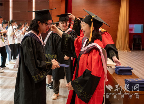 老師為畢業(yè)生撥穗。湖北日報大學(xué)生記者譚鵬華 攝