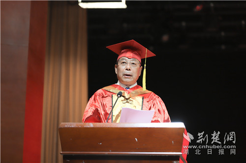 校長劉迎秋講話。湖北日報大學(xué)生記者張伯遠(yuǎn) 攝