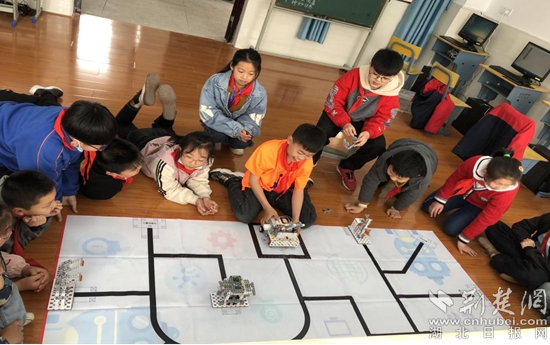 新民街小學(xué)的創(chuàng)客教室里,學(xué)生們?cè)谶M(jìn)行編程課程和機(jī)器人課程的學(xué)習(xí),在教師的引導(dǎo)下,學(xué)生們積極主動(dòng)地去發(fā)現(xiàn)問(wèn)題、探究問(wèn)題、解決問(wèn)題。