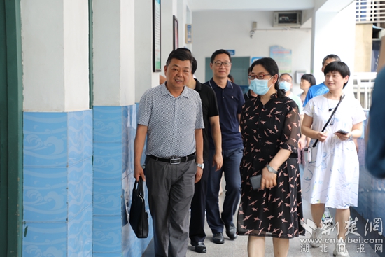 鄂州市教育局黨組書記范玉姣(中間)在新民街小學(xué)開(kāi)展調(diào)研。通訊員 供圖