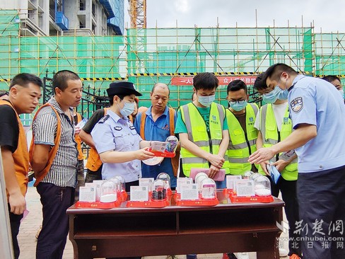 荊楚網(wǎng)(湖北日?qǐng)?bào)網(wǎng))訊(通訊員 許彩霞 王廳)“這‘開心水’、‘ 跳跳糖’也可能是毒品嗎?太危險(xiǎn)了!”6月16日上午,中建三局鄂州英山項(xiàng)目部建筑工地?zé)狒[非凡,鄂州市公安局鄂城區(qū)分局禁毒大隊(duì)聯(lián)合新廟派出所、新廟中心戒毒社區(qū)為工友們精心準(zhǔn)備了禁毒知識(shí)“套餐”,工友們拿著毒品仿真模型仔細(xì)端詳,感嘆毒品竟然有多種偽裝。