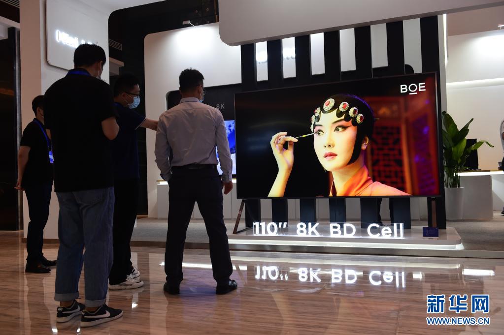6月17日,觀眾在京東方110英寸、8K顯示屏前駐足參觀。新華社記者 黃博涵 攝