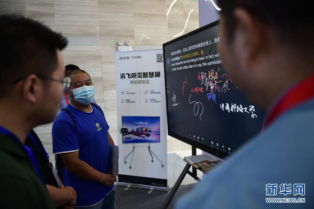 6月17日,觀眾在體驗(yàn)訊飛聽(tīng)見(jiàn)智慧屏。新華社記者 黃博涵 攝