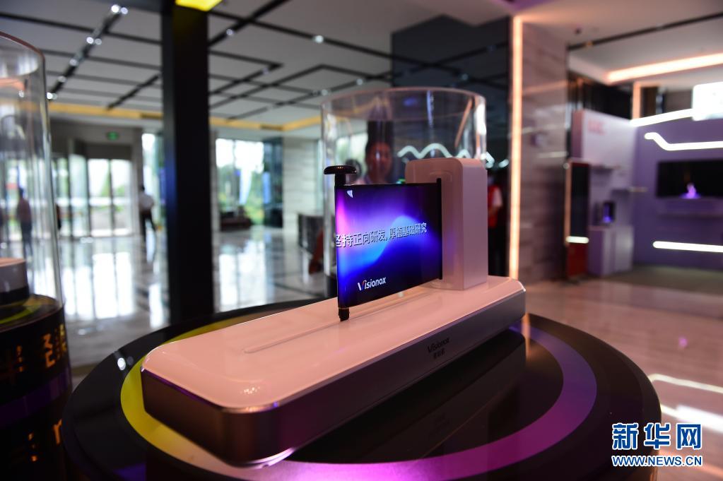 這是維信諾科技股份有限公司展出的可自由彎曲折疊的柔性顯示屏。新華社記者 黃博涵 攝