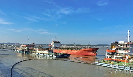 荊楚網(wǎng)(湖北日報(bào)網(wǎng))訊(通訊員 陳斌 任東陽)6月18日,筆者走進(jìn)中國石油西北銷售公司武漢分公司位于長江干線武漢陽邏的油品接卸碼頭,靠泊的油輪正在進(jìn)行卸油作業(yè)。江風(fēng)清新,綠蔭蔥蔥。“不讓一滴油品落入長江污染藍(lán)圖!”這是自2012年成立以來,武漢分公司石油人一直踐行的使命。