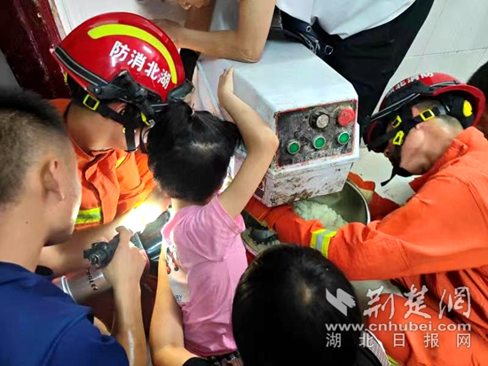 荊楚網(wǎng)(湖北日報網(wǎng))訊(通訊員黃消宣)6月18日,陽新縣興國鎮(zhèn)一名八歲女孩因好奇調(diào)皮,左手被卡在和面機的兩個滾軸中間動彈不得,所幸消防救援及時趕到,15分鐘左右助其成功脫困。