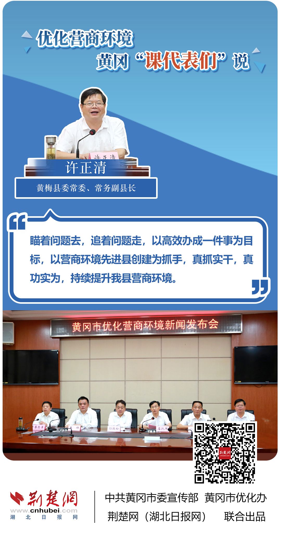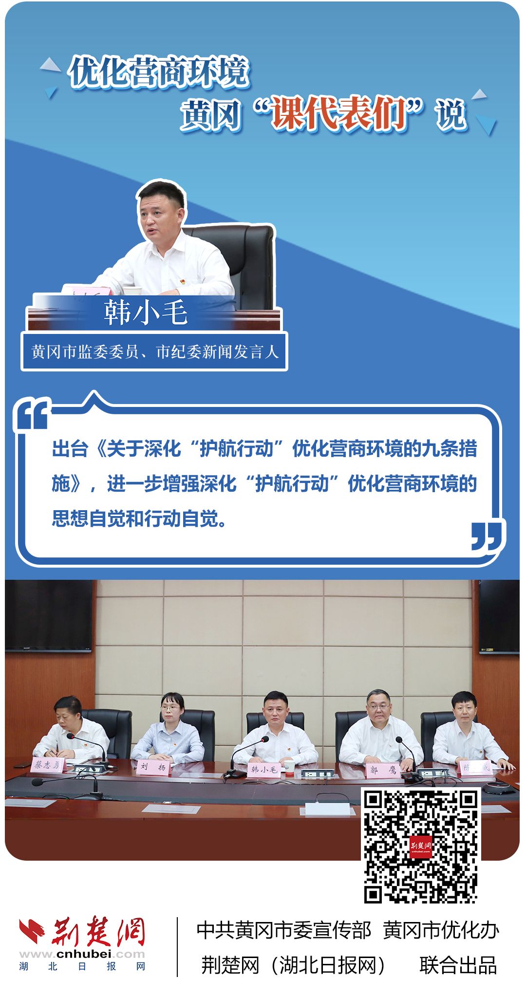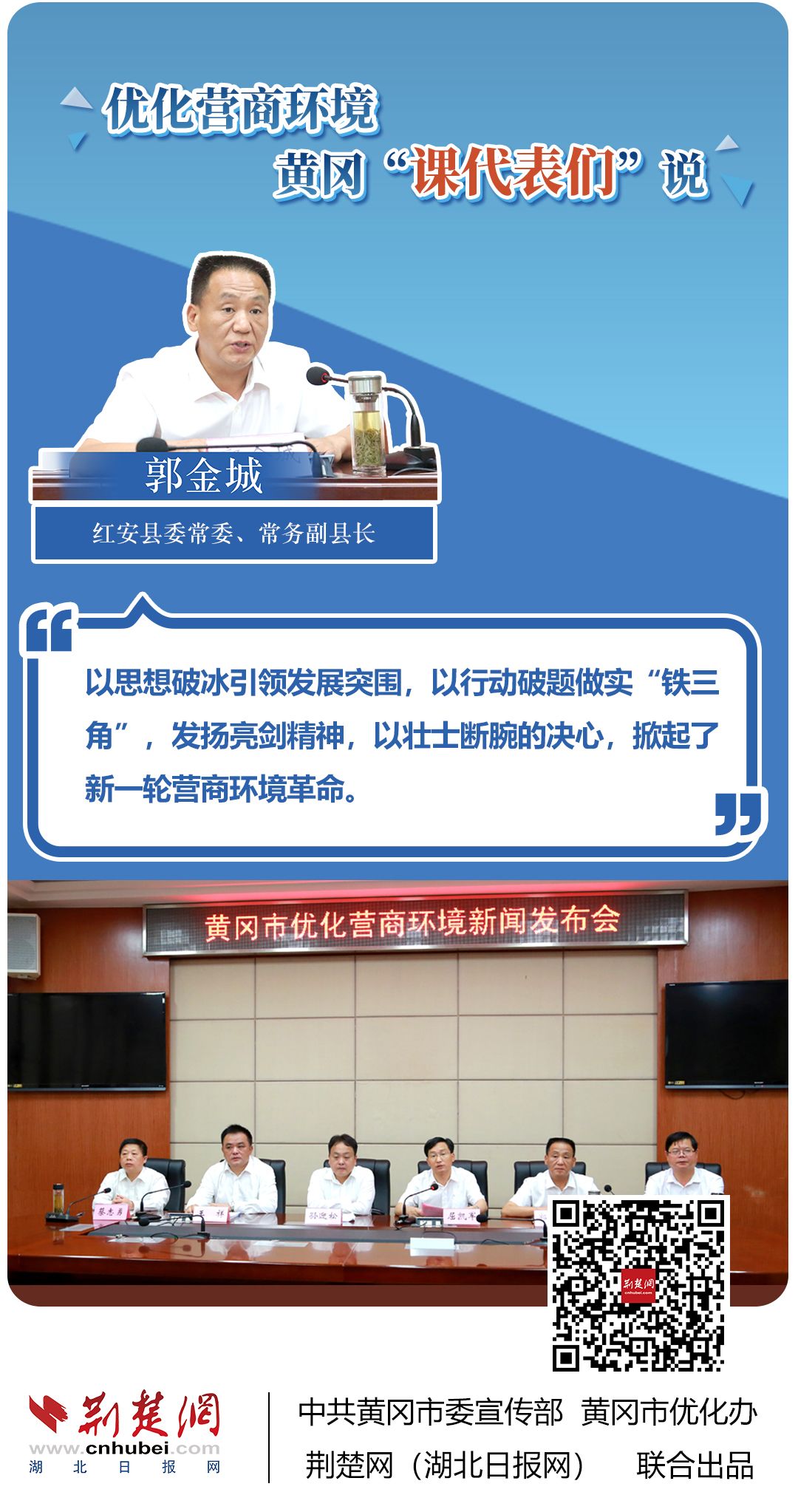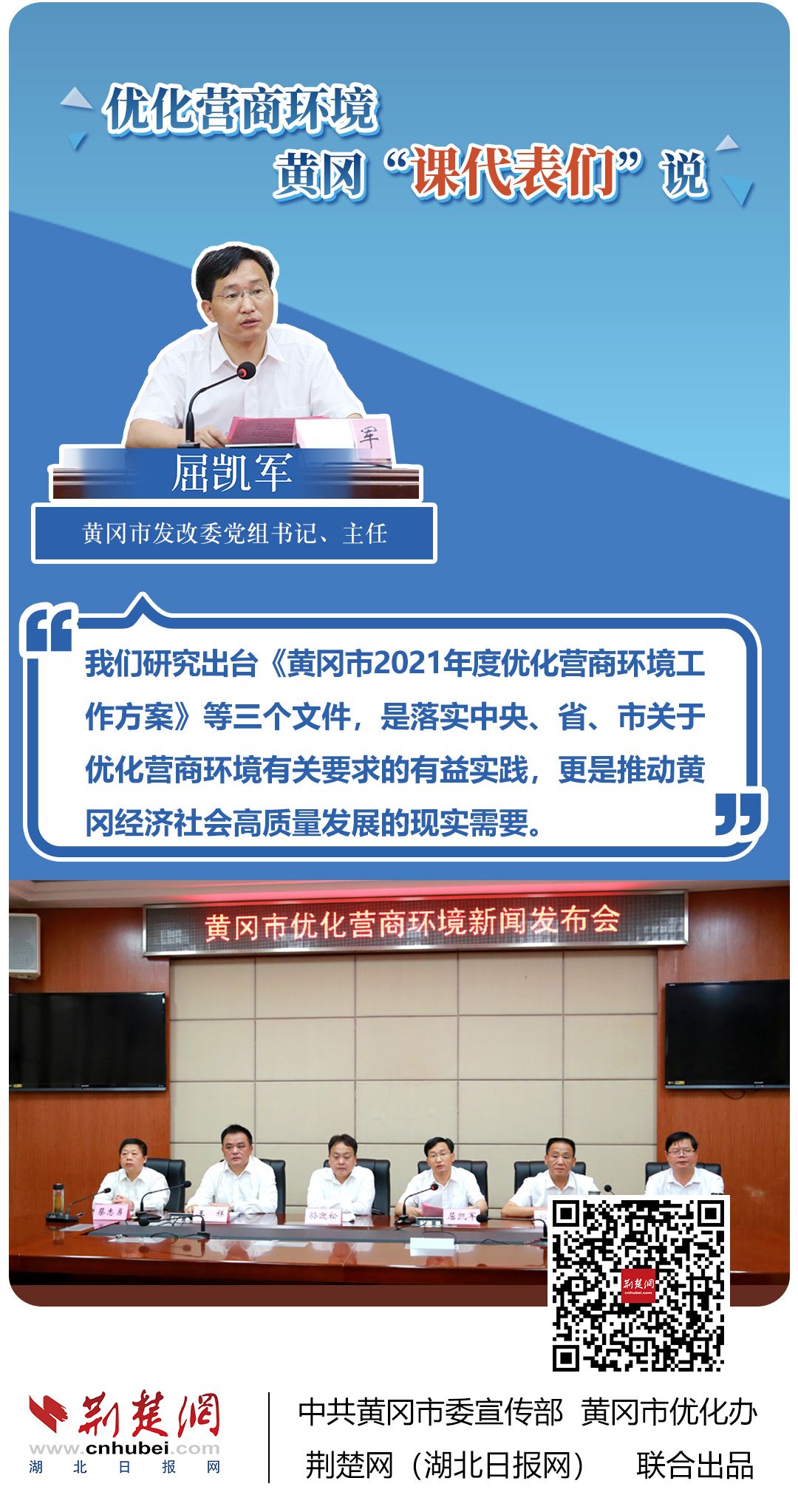 荊楚網(wǎng)(湖北日?qǐng)?bào)網(wǎng))訊(記者胡小軍、劉璐、阮瓊、熊子璇 通訊員郭斯、阮浩文)聚焦簡(jiǎn)政放權(quán)、再造審批流程、壓縮審批時(shí)限、降低經(jīng)營(yíng)成本……??6月22日,黃岡市一天召開(kāi)三場(chǎng)新聞發(fā)布會(huì),市直機(jī)關(guān)、部分縣市等14名發(fā)言人全面介紹優(yōu)化營(yíng)商環(huán)境有關(guān)情況。