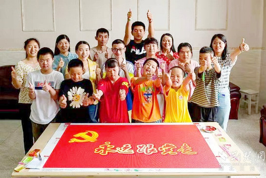 DIY鉆石畫黨旗是把精致閃耀的人造水晶平底圓鉆和黨徽圖案有機結(jié)合在一起,用點鉆工具提取的鉆,粘貼在畫布相應(yīng)的符號上。常人簡單,但對于智障孩子來講非常不易。