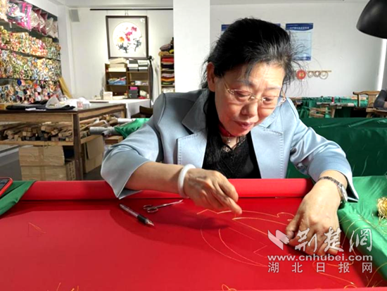 大冶刺繡傳承人劉小紅在創(chuàng)作。通訊員 供圖