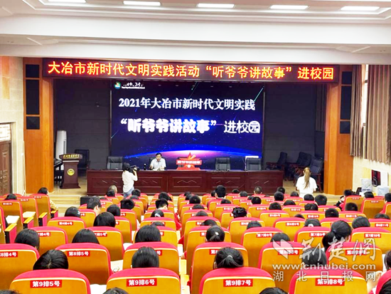 “江山代有才人出,薪火相傳永不滅。只有學好黨史這本教科書,你們才能做堪當大任的棟梁之才。”“百姓宣講團·爺爺故事營”的宣講隊隊長胡志國正在大冶市實驗中學激情講授黨史。