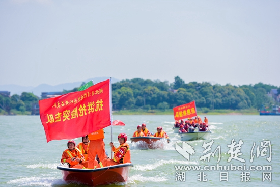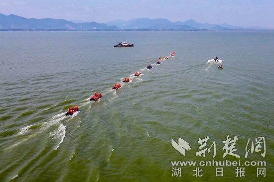 荊楚網(wǎng)(湖北日?qǐng)?bào)網(wǎng))訊(通訊員張敏)6月24日,黃石開發(fā)區(qū)·鐵山區(qū)汪仁鎮(zhèn)黃荊頭村,一隊(duì)舟艇在大冶湖水面上乘風(fēng)破浪,先后排成一列橫隊(duì)、S形縱隊(duì)、環(huán)狀隊(duì)形的戰(zhàn)術(shù)隊(duì)形,場(chǎng)面壯觀,現(xiàn)場(chǎng)圍觀人群時(shí)不時(shí)爆發(fā)出陣陣喝彩。