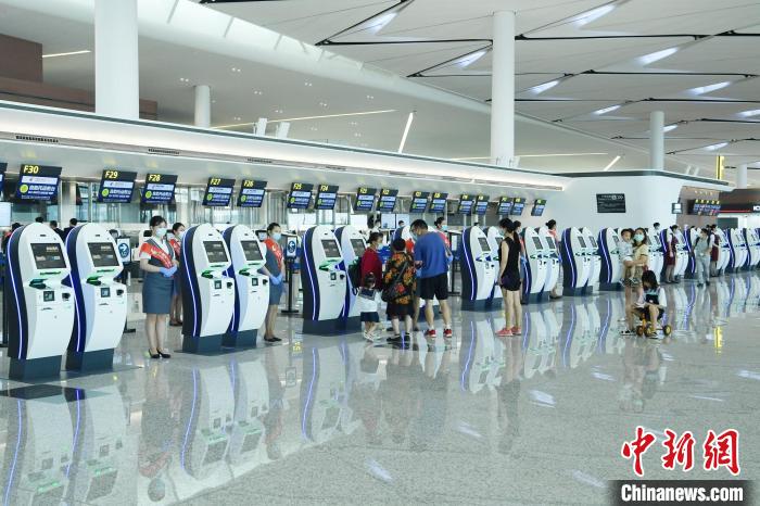 中新網(wǎng)成都6月27日電(單鵬 劉忠俊 何浠)“以前經(jīng)常在新聞上看到成都天府國際機(jī)場(以下簡稱天府機(jī)場)的消息,今天新機(jī)場通航投運(yùn),我們都很高興。”27日,成都市民譚曉娟帶著一家老少專程驅(qū)車20余公里趕到天府機(jī)場T2航站樓出發(fā)大廳,體驗(yàn)這座新機(jī)場的魅力。