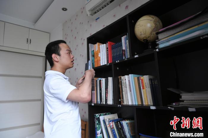 6月27日,汪艾韜在書架上翻閱書籍。 韓蘇原 攝