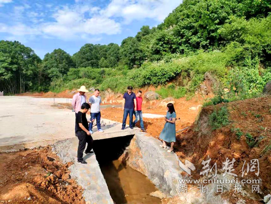圖為:駐村干部現(xiàn)場(chǎng)跟進(jìn)工程進(jìn)度。通訊員 供圖