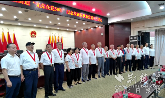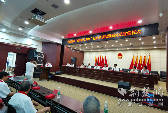 荊楚網(wǎng)(湖北日?qǐng)?bào)網(wǎng))訊 (通訊員 皮麗)一百年征程浩蕩,五十載初心如磐。筆者6月29日獲悉,近日,黃石鐵山街道舉行“光榮在黨50年”紀(jì)念章頒發(fā)儀式暨新黨員集中宣誓活動(dòng)。