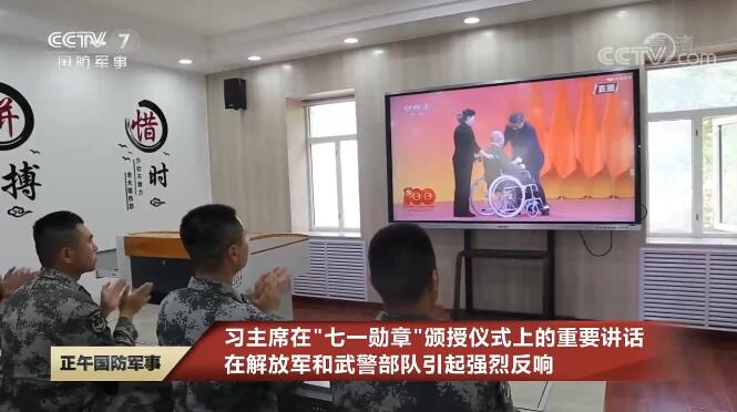 央視網(wǎng)消息:習(xí)主席在“七一勛章”頒授儀式上的重要講話,在解放軍和武警部隊(duì)引起強(qiáng)烈反響。廣大官兵紛紛表示,要以“七一勛章”獲得者為榜樣,在強(qiáng)軍興軍征程中留下奮斗的足跡。