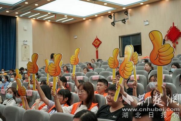 來(lái)自武漢市、漢陽(yáng)區(qū)相關(guān)部門領(lǐng)導(dǎo),各區(qū)直部門、街道的新時(shí)代文明實(shí)踐主管領(lǐng)導(dǎo),評(píng)審團(tuán)隊(duì)及各參賽項(xiàng)目親友團(tuán),共250余人現(xiàn)場(chǎng)參與。其中大眾評(píng)審團(tuán)由湖北日?qǐng)?bào)大學(xué)生記者團(tuán)的近30名來(lái)自武漢大學(xué)、湖北大學(xué)、中南民族大學(xué)等在漢高校大學(xué)生記者和大學(xué)生志愿者組成,為決賽項(xiàng)目進(jìn)行舉牌點(diǎn)贊。