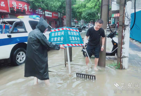 由于煙草路地勢低洼,旁邊月橋河排水緩慢、水位上漲,加之暴雨如注,排水不暢,街道積水嚴(yán)重。該局迅速采取應(yīng)急措施,安排防汛應(yīng)急搶險隊(duì)迅速打開雨水篦、窨井蓋,徒手清理周邊樹枝塑料袋等垃圾雜物,幫助快速排水,并對積水倒灌沖起窨井蓋,立即采取拉警戒線、圍欄,安排專人值守等措施,提示來往行人車輛安全繞行,保障通行安全。經(jīng)過二個多小時的搶險清淤工作,路面積水快速消退,市民出行如常。