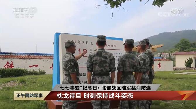 7日,北部戰(zhàn)區(qū)陸軍某海防連組織官兵開展紀(jì)念“七七事變”84周年系列活動(dòng),讓廣大官兵銘記歷史、勿忘國(guó)恥,激發(fā)投身強(qiáng)軍實(shí)踐的練兵熱情。營(yíng)區(qū)里,8塊大理石組成的“銘史墻”記錄了西方列強(qiáng)曾7次從這里入侵中國(guó)。這段屈辱的歷史時(shí)刻提醒著駐島官兵安不忘危,枕戈待旦。從1951年奉命駐島至今,哨所官兵時(shí)刻保持戰(zhàn)斗姿態(tài),練兵備戰(zhàn)一刻不曾松懈。
