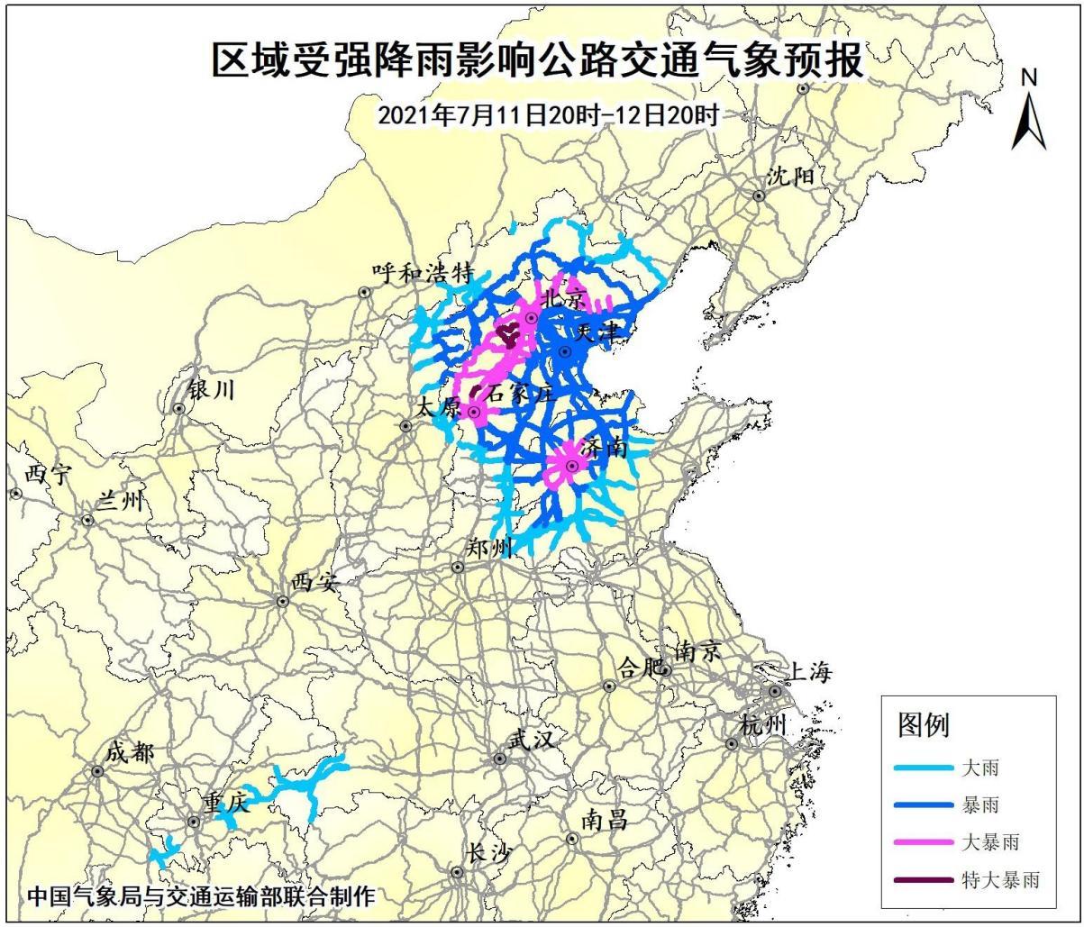 受特大暴雨影響的主要路段有: