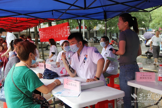 黃岡市中心醫(yī)院專家為群眾免費(fèi)測量血壓、血糖,提供咨詢診斷、預(yù)防指導(dǎo)、康復(fù)訓(xùn)練等健康管理服務(wù)。通訊員 供圖