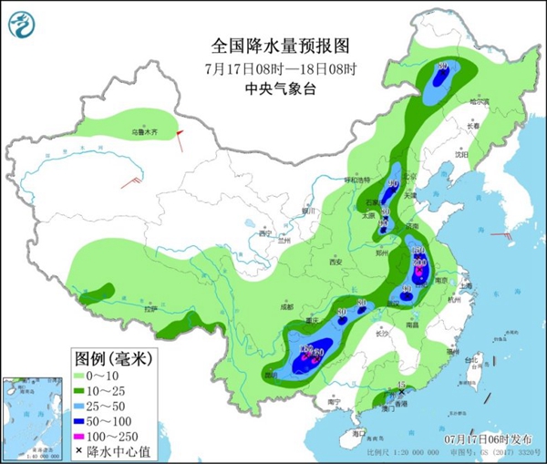 其中,今天內(nèi)蒙古東部、黑龍江西部、華北中部、黃淮中部、江淮中西部、江漢南部和東部、湖南北部、西南地區(qū)東部和云南東部等地部分地區(qū)有中到大雨,其中,內(nèi)蒙古東北部、河北中南部、安徽中北部和西南部、湖北東部、湖南北部、貴州中南部等地部分地區(qū)有暴雨或大暴雨(100~200毫米)。