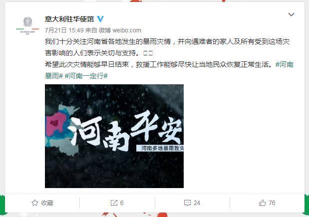 此外,以色列駐華大使館轉(zhuǎn)發(fā)了“河南加油”的相關(guān)微博,并祈禱稱,“愿大家都平安。”