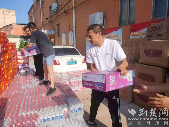 呂紹才出發(fā)前在武漢購買礦泉水、方便面等物資。 通訊員供圖