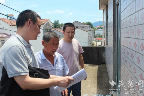 向倒損住房戶主介紹相關政策。通訊員供圖