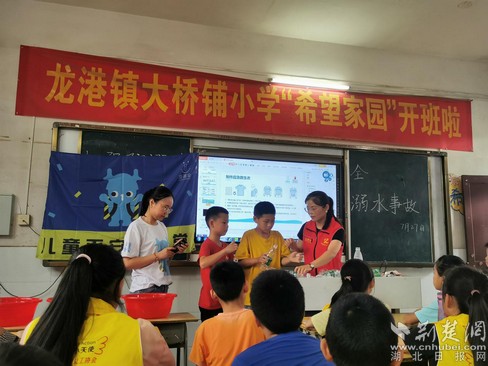 據(jù)龍港鎮(zhèn)團(tuán)委書記成炫樂介紹,此次防溺水主題活動(dòng),由陽新縣團(tuán)縣委、龍港鎮(zhèn)團(tuán)委聯(lián)合舉辦,并組織陽新縣義工協(xié)會(huì)、陽新雄鷹應(yīng)急救援隊(duì)為龍港鎮(zhèn)大橋小學(xué)“希望家園”175名留守兒童進(jìn)行集中暑期防溺水安全教育。自該“希望家園”開班半個(gè)月以來,來自湖北師范大學(xué)“小喇叭”實(shí)踐隊(duì)的20名大學(xué)生志愿者在開展日常支教活動(dòng)的同時(shí),也一直將安全教育貫穿支教過程始終。
