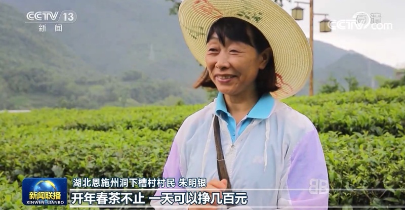 這幾天,湖北恩施的洞下槽村又迎來了不少游客。游客在茶園里親手采茶,是村里的打卡項目。