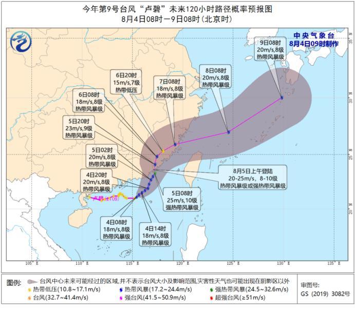 預(yù)計(jì),“盧碧”將以每小時10公里左右的速度向東偏北方向移動,5日上午在廣東陸豐到福建晉江一帶沿海登陸(熱帶風(fēng)暴級或強(qiáng)熱帶風(fēng)暴級,8-10級,20-25米/秒),登陸后強(qiáng)度有所減弱,并將于7日白天移入東海南部海面,逐漸向東北方向移動。