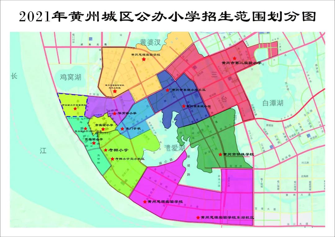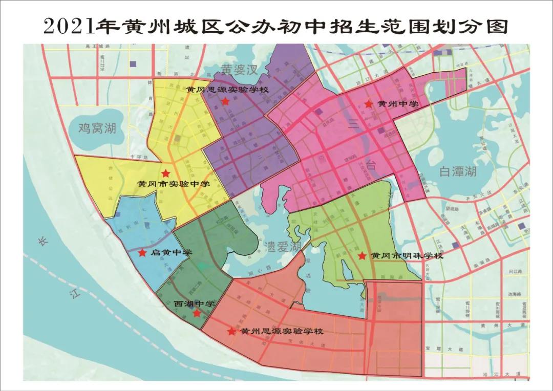 1.黃州中學(初中部):沿環(huán)湖路、赤壁大道至新港大道以東,沿新港一路、長河大道至齊安大道以北,沿白潭湖大道、赤壁大道、古潭路、問津路至永安路以西,沿路口大道、三臺河至中環(huán)路以南。原市南湖中學片區(qū)。